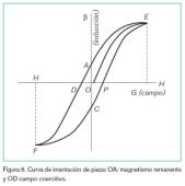 El magnetismo remanente lo ha tomado la pieza en el procedimiento de toma y sujeción de la misma por imantación con el electroimán. Al soltar éste la pieza y decrecer el campo magnético, la inducción no se anula sino que por el fenómeno de histéresis (véase la curva de histéresis en la figura 6) queda la pieza con una inducción OA denominada “magnetismo remanente”, el cual hemos de lograr que desaparezca.