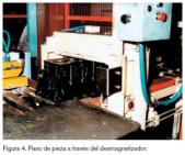 Para ello, se hace pasar la pieza a través de un nuevo electroimán denominado, en nuestra aplicación, desmagnetizador (figura 4), el cual por su forma dirige las líneas de fuerza de la pieza hacia fuera, liberando el citado magnetismo remanente.