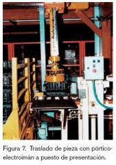 Para controlar la remanencia posterior a la operación del desmagnetizador, tendríamos que extraer la pieza al final del ciclo de histéresis cuando el valor de campo estuviera en + o – del punto “0” de la ordenada de la curva de inducción. En sentido práctico podemos estar tranquilos que los valores serían despreciables como para tenerlos en cuenta. La figura 7 muestra el momento de trasladar el pórtico, con la sujeción del electroimán, una pieza al puesto de presentación y entrada en máquina.