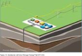 Este sistema de almacenamiento (figura 11) se lleva a cabo a alta presión (40-70 bares) y a temperaturas cercanas a la ambiente. Esto conlleva depósitos con menor volumen. Un gran número de estudios realizados han concluido que el aire debe ser comprimido y almacenado en el subsuelo y en tuberías altamente presurizadas (20-100 bares).