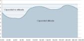 A la vista de la gráfica de la figura 1, se puede estimar que el aprovechamiento o la eficiencia del sistema para ese día es del 77%; hay, pues, un 23% de la capacidad del sistema sin utilizar.