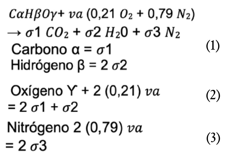 Si se sustituyen en las ecuaciones estequiométricas los pesos moleculares del combustible y del aire, se obtienen los siguientes valores: