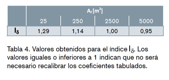 Los resultados de la tabla 3 muestran que el índice es inferior a la unidad en los escenarios habituales y, por tanto, no es necesario recalibrar los coeficientes ![]()