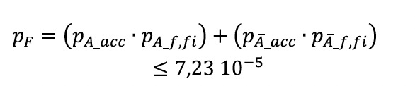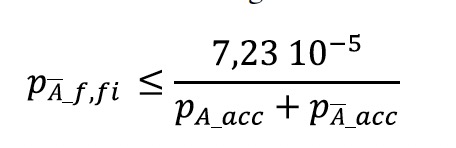 Y, en consecuencia, se puede obtener un valor conservador para el índice de fiabilidad exigido en caso de incendio y con presencia de una nueva tecnología, con la expresión.
