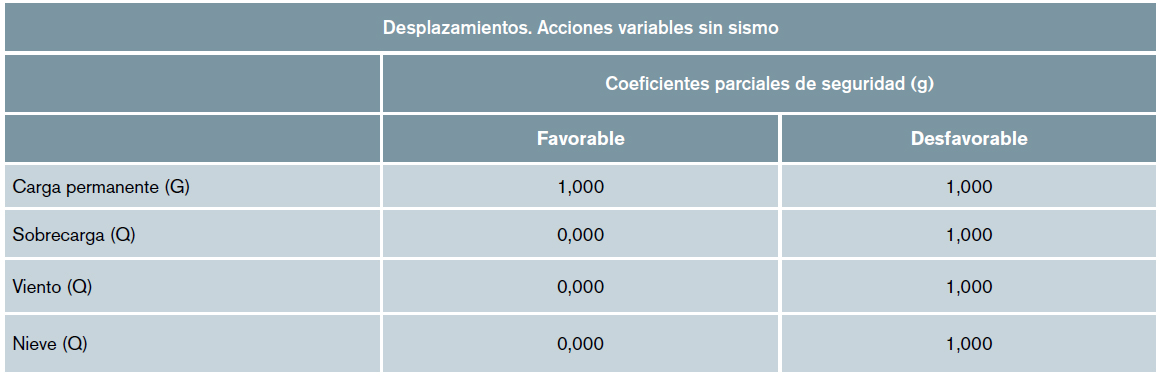 Para una categoría de uso G, según el DB-SE, cubiertas accesibles únicamente para mantenimiento las combinaciones de acciones para cada situación de proyecto y estado límite los coeficientes que utilizar se presentan en las tablas 5 a 9.