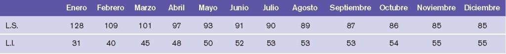 - Calcular los límites superior e inferior de cada mes, mediante tablas (Poisson); si se utiliza la distribución normal, se emplearían las fórmulas.