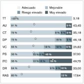 A simple vista, basándonos en la representación gráfica de la figura 4, podemos ver que el riesgo psicosocial para el factor ITC (interés por el trabajador/compensación) se sitúa en la puntuación media, en “Muy elevado”. Serán objeto de análisis también aquellos factores que estén posicionados en la categoría de “Mejorable”.