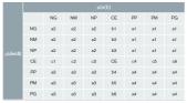 Por ejemplo: [NP∈(μ(e(t))]∩[PG∈(μ(de/dt))]⇒(Inferior a P no puede haber (no es posible), pero inferior a G sí es posible, y es m). Por tanto, la salida es PM.