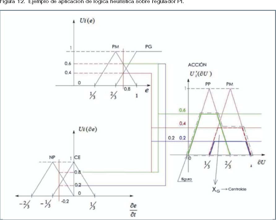 tomarse si, por ejemplo, la función de pertenencia del error (μ(e(t))) tiene un valor difuso de PG (positivo grande) y, a la vez, la función de pertenencia de la tendencia del error (μ(de/dt)) tiene un valor difuso de PM (positivo mediano).