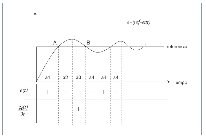 Se divide la señal en zonas, de acuerdo con el error y la derivada del error, tal como se muestra en las figuras 4 y 5.