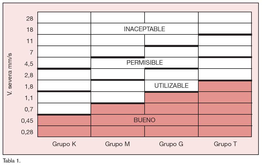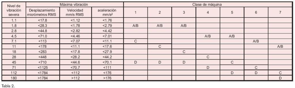 En la tabla 2 se indica la clasificación de los niveles de vibración según el tipo de motor alternativo.