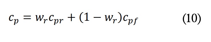 Para la capacidad calorífica específica efectiva se utilizó un promedio ponderado: