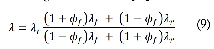 En la expresión anterior, hr y hf son las conductividades térmicas de la resina y la fibra, respectivamente, y qf es la fracción de volumen de fibra. El valor de hr se obtuvo experimentalmente y el valor de hr se supuso de 0,9 Wm?1 K?1. Pese a que es posible que exista anisotropía por una cierta orientación de las fibras de forma perpendicular al eje de simetría del molde, se ha asumido que no había ninguna dirección preferente y por tanto se ha utilizado esta expresión única en todas las direcciones.