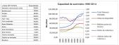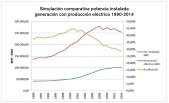 Como introducción resulta muy gráfico comprobar cuál ha sido la evolución de la potencia instalada en generación frente a la energía producida y los máximos de potencia demandada, para comprobar el desequilibrio tan importante que presenta y la infrautilización del mismo. En la figura 1 se muestra la evolución de la potencia instalada peninsular en generación frente a la energía producida desde el año 1990 hasta el 2014, don-de se incluye también el porcentaje de utilización de la potencia de generación y donde comprobamos que, a partir del año 2000 hasta 2014, se multiplica por 2 la potencia instalada de generación y coincide, por tanto, con el descenso en picado del porcentaje de utilización, ya que la producción de energía eléctrica durante este periodo solo aumenta el 30% frente al 100% de la generación.