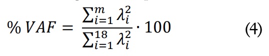 A partir de la aplicación del SVD en el criterio del VAF, se ha obtenido una reducción en el número de variables que permitirán hacer una reconstrucción del movimiento de manera que se pierda la menor cantidad de información posible. Estas PC que explican un mayor porcentaje del VAF (%VAF) representan los datos con mayor variación, mientras que las PC con menor VAF son consideradas ruidos del sistema [20].