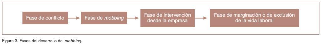 El mobbing se desarrolla temporal-mente siguiendo la secuencia dada en la figura 3. A continuación se van a analizar cada una de las etapas con mayor detenimiento.