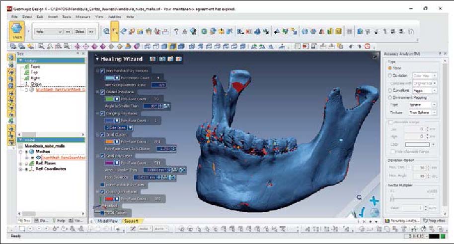 El software Geomagic Design X so-porta la importación de más de 60 formatos y permite combinar datos de diseño asistido por ordenador (CAD) con datos procesados de escaneos 3D, para poder crear así modelos sólidos y editables, como son las estructuras óseas desarrolladas. Design X está construido sobre un Kernel CAD (Parasolid) que le da la flexibilidad para hacer modelos CAD reales de la manera deseada.