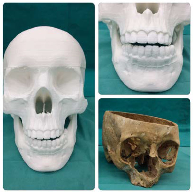 De esta forma hemos conseguido obtener un modelo craneal, a escala real, con todos los detalles anatómicos que en los huesos reales en ocasiones se desdibujan debido a su mal estado o deterioro con el paso del tiempo.