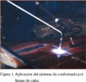 El sistema que nos ocupa, el conformado por líneas de calor, es una técnica de reciente aplicación, en la que por medio de un foco de calor y un foco refrigerante aplicados de una manera determinada, se consigue generar una serie de dilataciones y contracciones en la pieza que van a dar lugar a que la pieza se vaya conformando de la manera deseada.