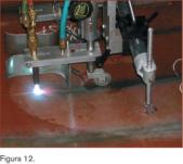 Asimismo, en el palpador, disponemos de un control de altura manual, para fijar la distancia del soplete a la chapa. Una vez fijada esta altura, ante cualquier variación, el palpador transmite la corrección de altura necesaria. (figura 11)