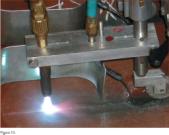 Asimismo disponemos de un sistema de giro para poder orientar la antorcha, una vez que las chapas van cogiendo curvatura, de tal modo que siempre ataca-mos sobre la perpendicular de la línea de curvatura.