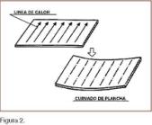 Si la aplicación del calor sobre una chapa, se realiza de forma lineal (figura 2), el efecto de deformación que se produce, se traduce en una distorsión angular respecto a la línea de aplicación del calor. De este modo si nosotros aplicamos calor sobre un determinado numero de líneas paralelas y equidistantes sobre una chapa, conseguimos el mismo efecto de curvado que se consigue empleando los rodillos de un cilindro.