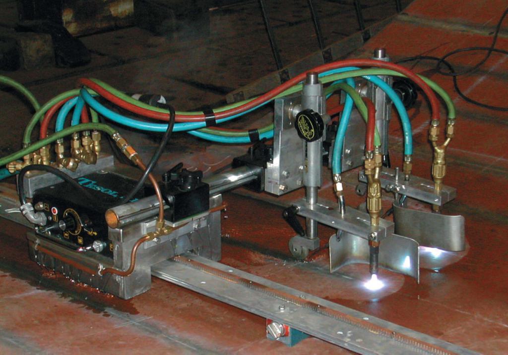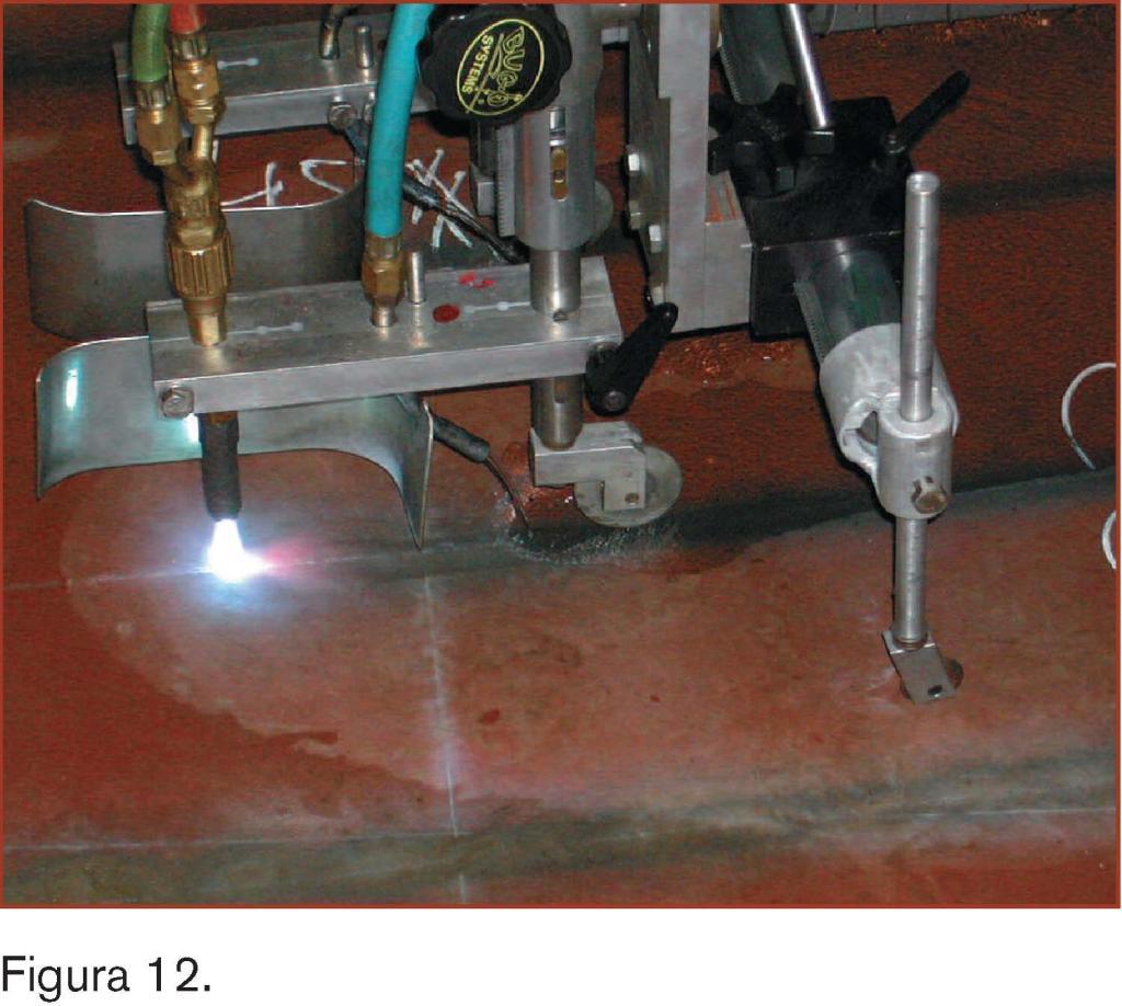 Asimismo disponemos de un sistema de giro para poder orientar la antorcha, una vez que las chapas van cogiendo curvatura, de tal modo que siempre ataca-mos sobre la perpendicular de la línea de curvatura.