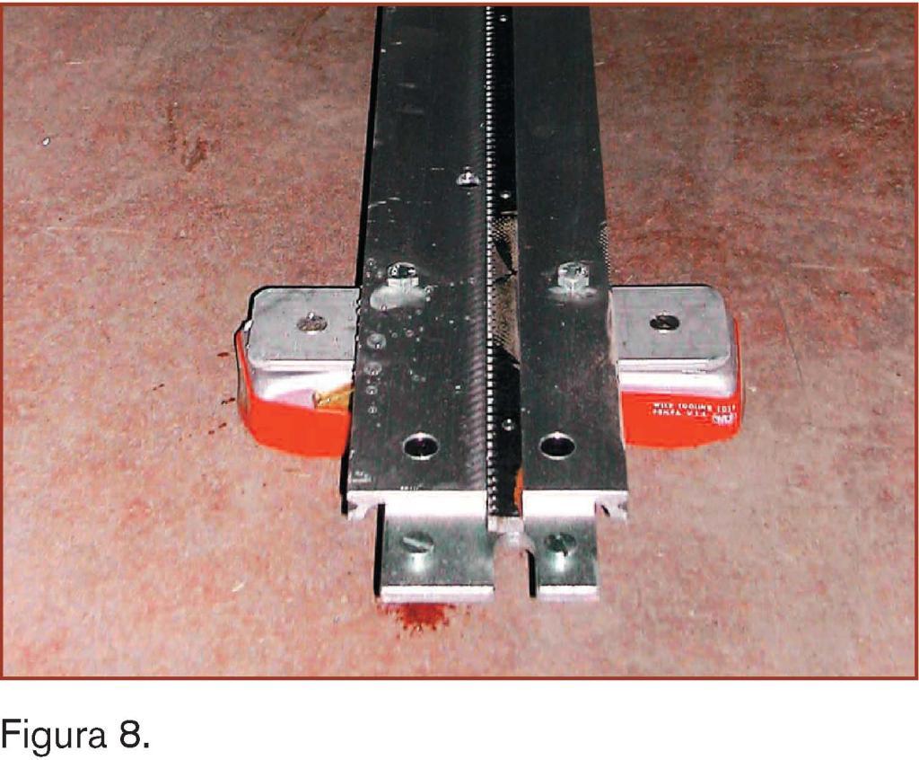 El sistema de desplazamiento del autómata es un tractor ligero y robusto, montado sobre un raíl de aluminio flexible con imanes para su correcto montaje y fijación a la pieza a conformar. (figura 6).