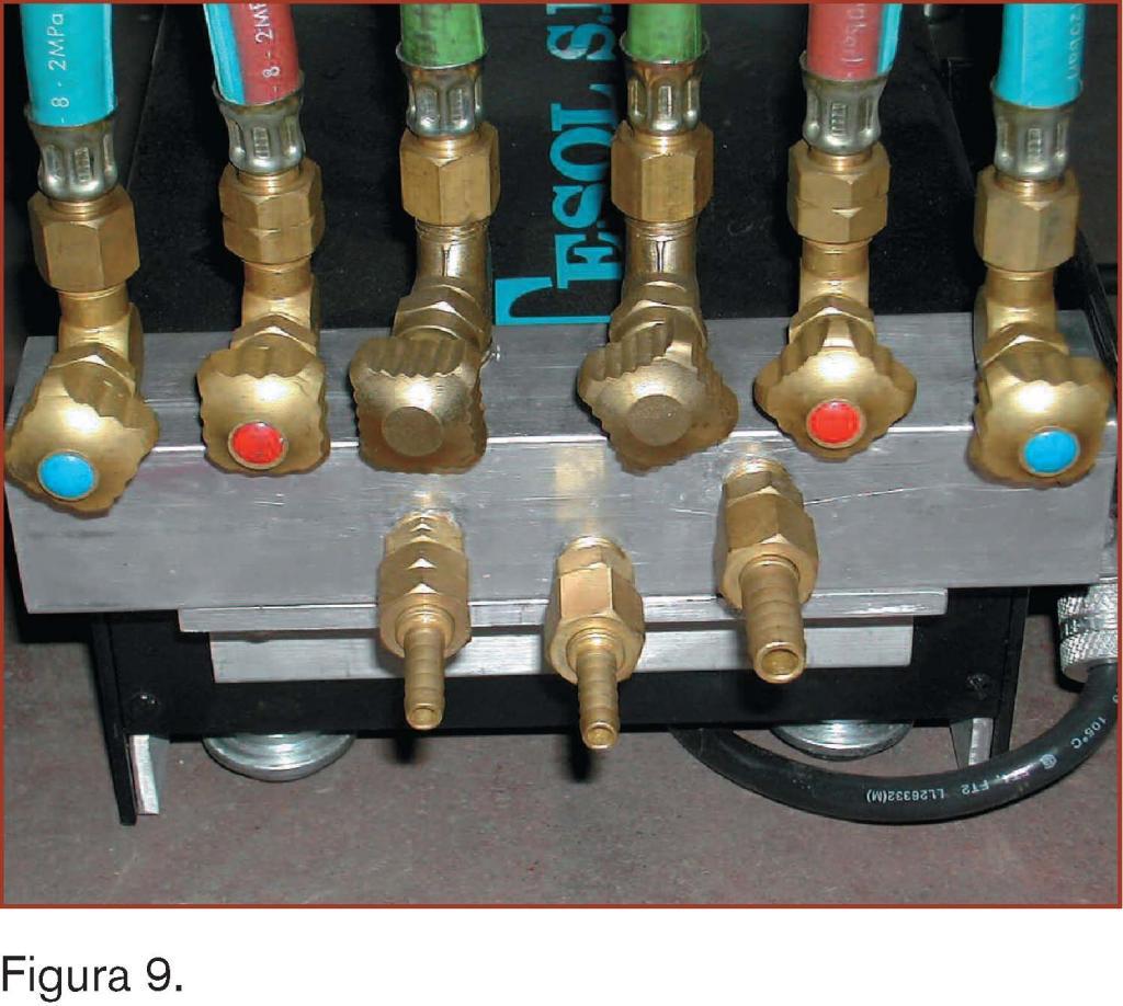 Al igual que el sistema de gases, la regulación del caudal de agua de refrigeración se realiza mediante la regulación de las válvulas de agua en el colector.