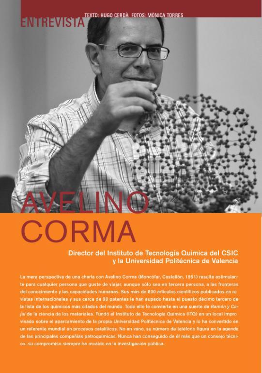 La mera perspectiva de una charla con Avelino Corma (Moncófar, Castellón, 1951) resulta estimulante para cualquier persona que guste de viajar, aunque sólo sea en tercera persona, a las fronteras del conocimiento y las capacidades humanas. Sus más de 600 artículos científicos publicados en revistas internacionales y sus cerca de 90 patentes le han aupado hasta el puesto décimo tercero de la lista de los químicos más citados del mundo. Todo ello le convierte en una suerte de Ramón y Cajal de la ciencia de los materiales. Fundó el Instituto de Tecnología Química (ITQ) en un local improvisado sobre el aparcamiento de la propia Universidad Politécnica de Valencia y lo ha convertido en un referente mundial en procesos catalíticos. No en vano, su número de teléfono figura en la agenda de las principales compañías petroquímicas. Nunca han conseguido de él más que un consejo técnico; su compromiso siempre ha recaído en la investigación pública.