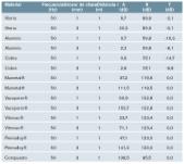 Para distinto tipo de material empleado podemos indicar la siguiente tabla 6 con distintos resultados aproximados por la teoría de Kaden. En la web: www.telefonica.net/web2/blinmag podemos encontrar una tabla interactiva de este tipo.