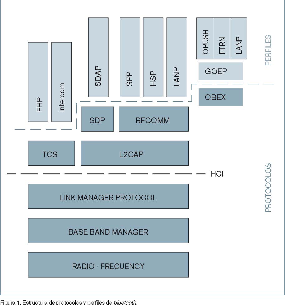 ¿Qué se entiende por perfil, referido a la tecnología bluetooth? Pues bien, un perfil es una forma de comunicación o modelo de uso entre dos dispositivos bluetooth, siempre referido a nivel de aplicación. Si se observa la estructura de esta tecnología, existen varios protocolos como son HCI, L2CAP, LMP, RFCOMM, SDP, OBEX y varios perfiles como pueden ser GAP, SDAP, SPP, OPUSH, FTRN, DUN, LAN, FAX, etcétera. (Para una descripción completa de protocolos y perfiles véase la especificación de blue-tooth.)