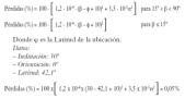 Cabe decir que el factor de la orientación no penaliza tanto, ya que hasta en una orientación de ± 15º con respecto al Sur, las pérdidas son casi despreciables o no llegan al 1%. Estas pérdidas vienen dadas por la siguiente expresión [A]: