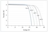 El factor que puede variar en mayor o menor grado la eficiencia de estos elementos, sin duda, es la temperatura ambiente. En la gráfica de la figura 6 se observa cómo una variación de temperatura modifica directamente la tensión de los paneles y, en consecuencia, disminuye su punto de máxima potencia, su rendimiento empieza a disminuir y puede llegar a bajar hasta el 10% de su rendimiento nominal, y una vez superados los 75 ?C el dispositivo deja de funcionar como medida autoprotectora.