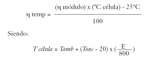 Para obtener el rendimiento global de la instalación se aplica la siguiente fórmula: