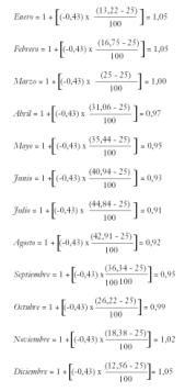 Enero: (1,36) x (1,69 kWh/m2*día) = 2,30