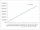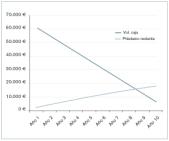 En las figuras 1 y 2 se observa como la recta del volumen de caja se iguala a la cantidad restante de financiación en torno a ocho años, con lo que se puede anular dicha deuda y quedar la instalación por completo en propiedad.