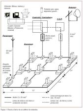 + 3·L2 + 3·L3 + 3·L4), y se obtiene el número de picas de 2 m que deberán clavarse verticalmente en el terreno y unirse al anillo. La tabla de la NTE no es más que la aplicación de las expresiones de la resistencia de tierra para electrodos formados por conductores enterrados horizontal-mente y por picas verticales. Esta tabla calcula la tierra para que en el caso más desfavorable de cada tipo de terreno (? máximo) se obtenga 37 ? en edificios sin pararrayos y 15 ? en edificios con pararrayos.