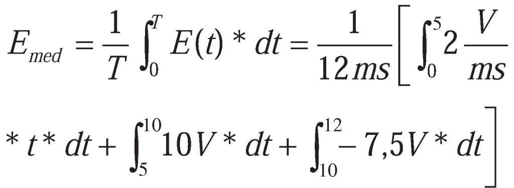 Empezaremos calculando el valor medio de la forma de onda. Como no es una onda continua, la tendremos que definir a intervalos: