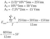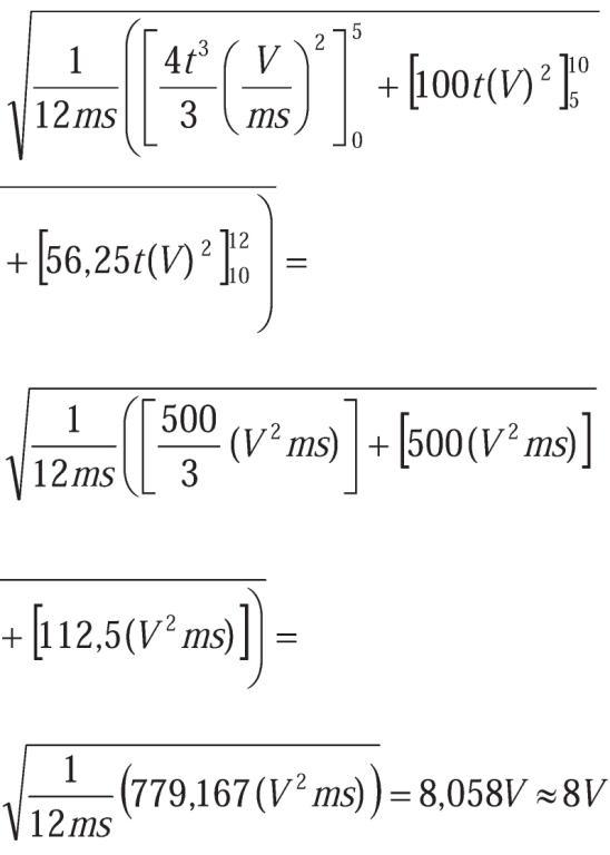 La forma de onda se puede descomponer en tres áreas regulares de fácil cálculo: un triángulo y dos rectángulos.