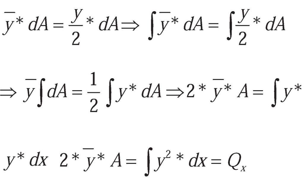 Donde Qi es el momento estático de cada una de las figuras regulares en las que se puede descomponer la función o forma de onda en cuestión e y1es el centroide de cada una de las figuras, junto con Ai que es el área de las figuras regulares. Este producto siempre es positivo, dado que si el área es negativa, el centroide también lo será, con lo cual, su producto es positivo como se ha dicho.