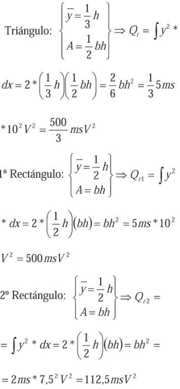 Los momentos estáticos de las áreas que componen la forma de onda son los siguientes: