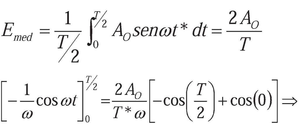 Determinar el valor medio y el valor eficaz de un semiperíodo de una señal alterna senoidal.