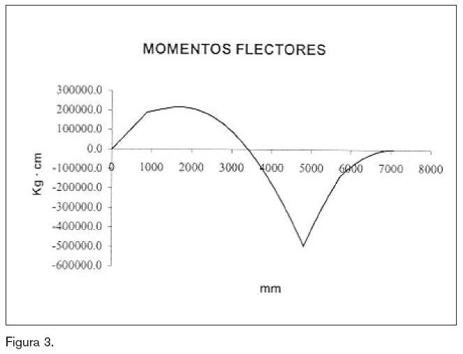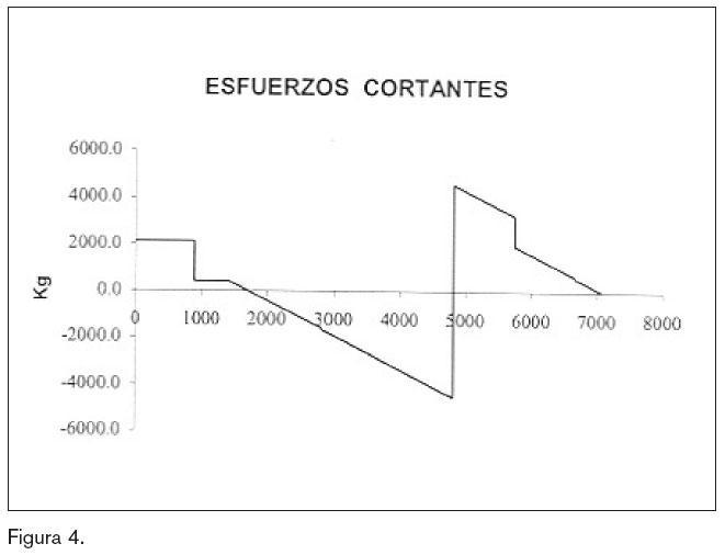 Sobre toda la longitud del bastidor y sobre-bastidor se representan gráficamente los momentos flectores y esfuerzos cortantes de cada uno de los cuatro casos diferenciados