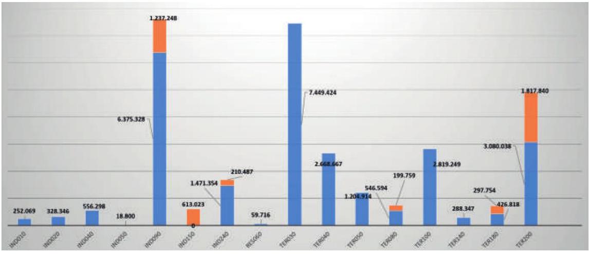 - TER200: sustitución de aparato de refrigeración con función de venta directa. Sin embargo, en lo que a ahorros anuales se refiere, si bien, por un lado, se mantiene la TER030, destaca la ficha IND090: sustitución o reemplazo de compresor de aire por uno más eficiente.