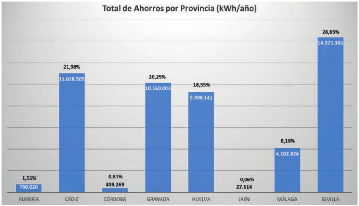 - Los ahorros suponen más del 4% de todo el consumo de energía final del sector residencial en la provincia de Almería y más del 1% de las provincias de Sevilla y Málaga.