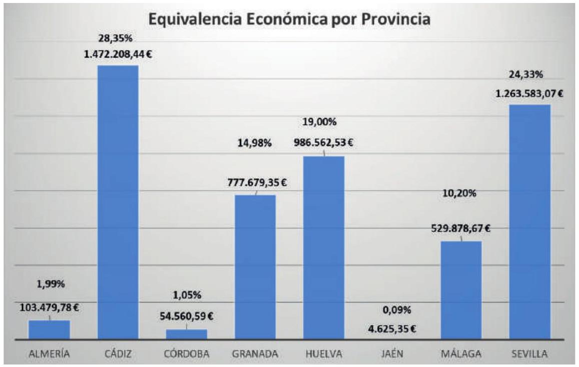 Finalmente, los ahorros obtenidos en la comunidad autónoma de Andalucía suponen, aproximadamente, 3.800 tep (toneladas equivalentes de petróleo) y las emisiones a la atmósfera que se han evitado se acercan a las 11.500 tCO2 (toneladas de ).
