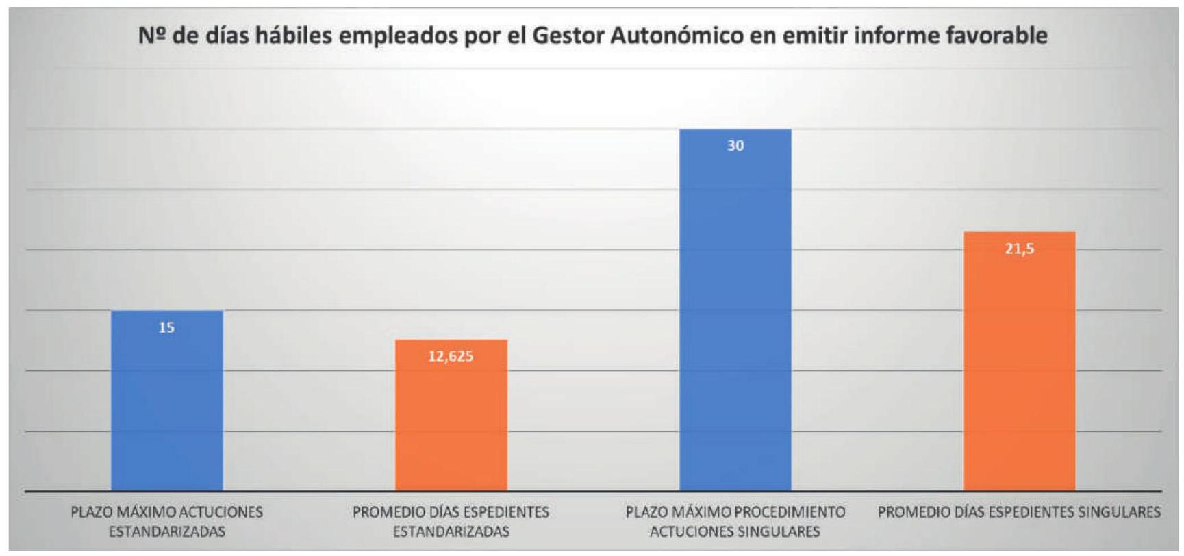 Finalmente, el promedio de días empleados en la revisión de cada expediente de solicitud y su información al coordinador nacional se ha mantenido dentro de los límites establecidos para el procedimiento para actuaciones estandarizadas y para actuaciones singulares.