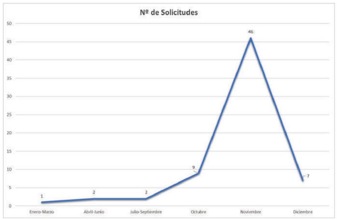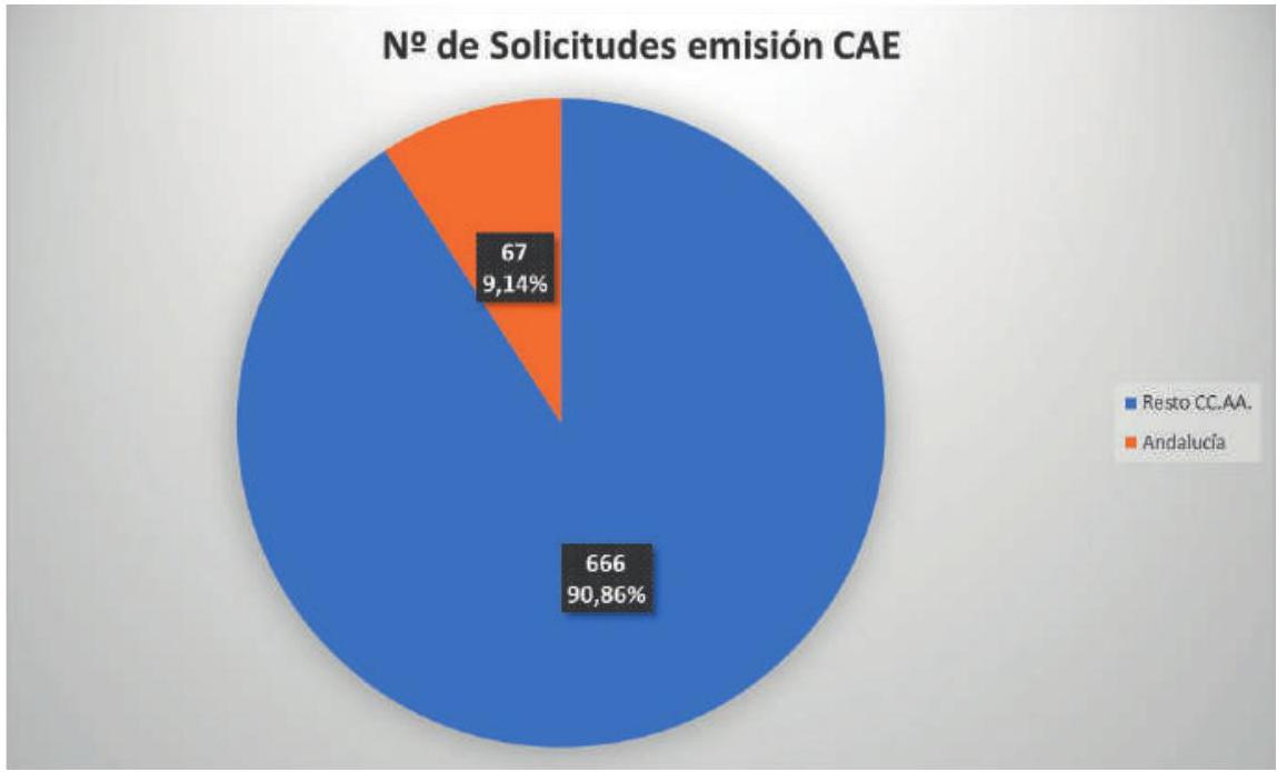 En estas dos primeras imágenes se desglosa el número de solicitudes de emisión de CAE recibidas en todo el año. En la figura 7 se ve el incremento significativo de solicitudes en el mes de noviembre.