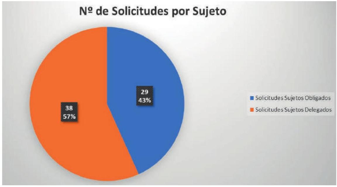 De los datos desglosados, el número de solicitudes realizadas por sujetos delegados es ligeramente superior al de sujetos obligados.